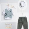 Βαπτιστικό κοστούμι Be Fabulous Freddy σε χρώμα Beige. Περιλαμβάνει λινό γιλέκο λοξό με κουμπωμα σε ιμάντα, πουκάμισο μαο λινό εκρού, παντελόνι λινό βράκα με πιέτες σε χρώμα Beige, ζώνη και καπέλο με φάσα. Διαθέσιμο σε 4 μεγέθη 6-12, 12-18, 18-24, 24-36(εξτρά χρέωση)